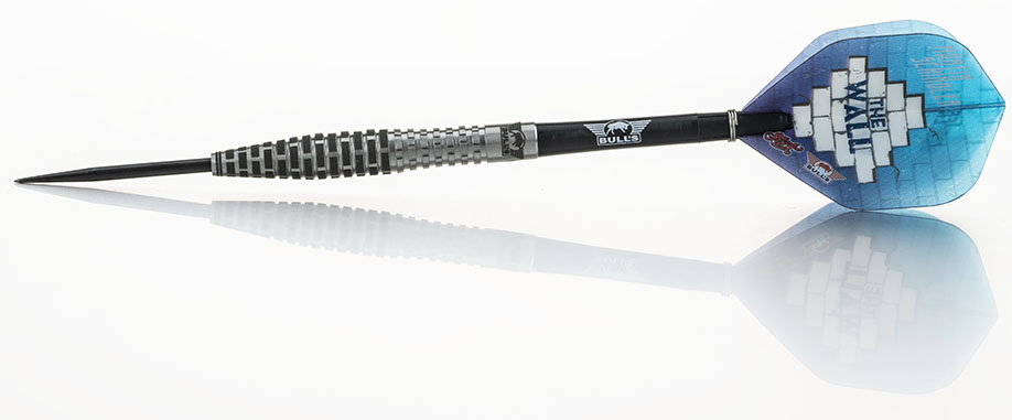 Nun ja, ich habe sie gerade gewechselt... Ich hatte bisher one80 Darts in 23 g, jetzt sind es aber 23 g darts von meinem neuen Sponsor Bulls Niederlande, die am 26. November neu auf den Markt kommen werden. Bei denen ist der Barrel nicht mehr ganz gerade wie bei meinen vorherigen Darts, sondern wird in der Mitte etwas dicker.