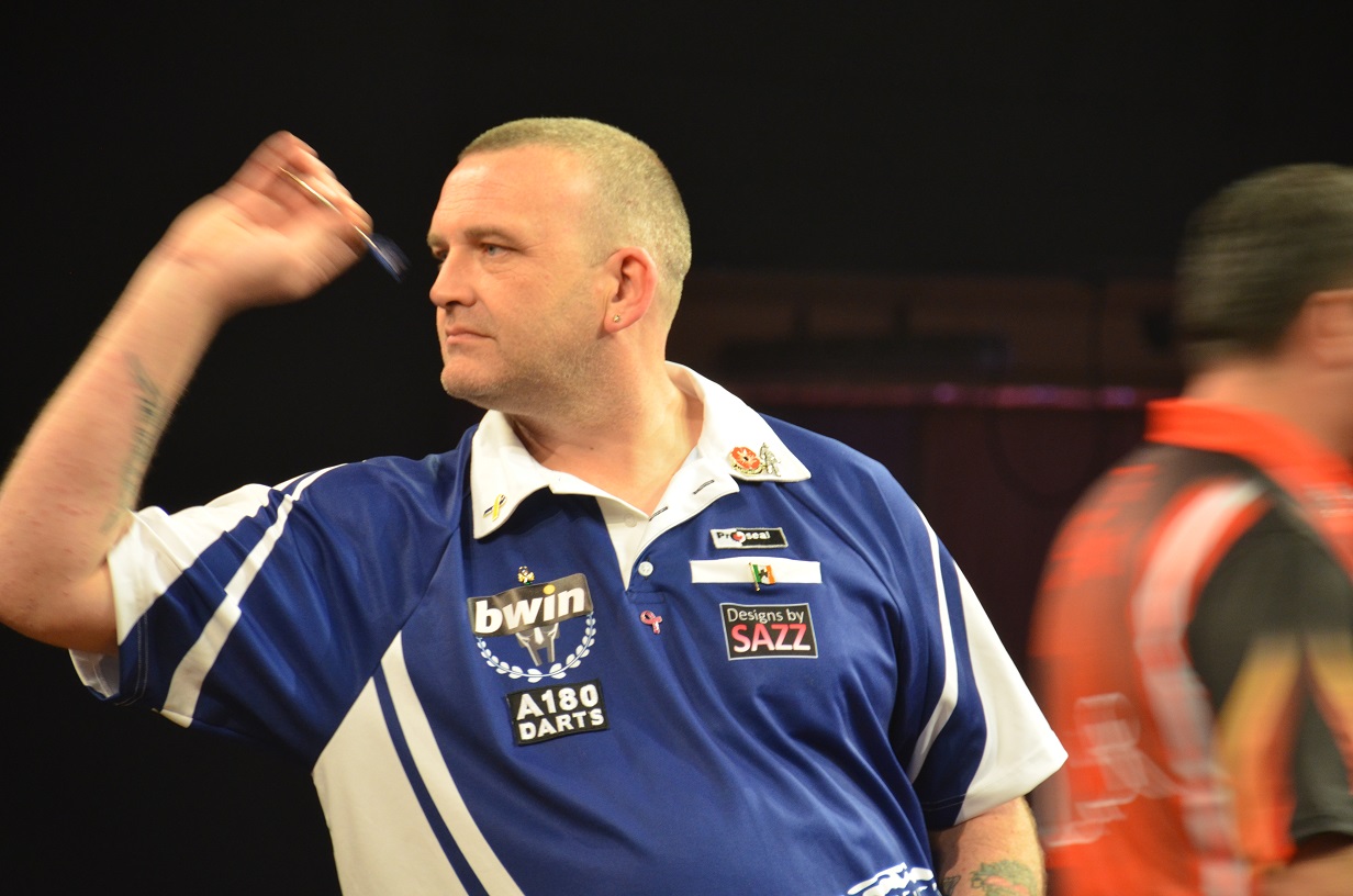 Mensur Suljovic trat gegen den Finalisten der Winmau World Masters, Mark McGeeney an, der sich der Situation nicht ganz gewachsen zeigte. Er kann deutlich besser spielen, als er das gegen Suljovic tat. Vor allem kann er viel besser ausmachen. McGeeney ist sicher nicht nur zufällig die Nummer 1 der BDO und spielte bei den Winmau World Masters zum Teil beeindruckende Darts. Vielleicht wird er uns die auch in den nächsten beiden Spielen beim Grand Slam noch zeigen können. Während des Spiels musste im Übrigen das Board ausgetauscht werden - nachdem Suljovic eigentlich eine 180 geworfen hatte, einer der