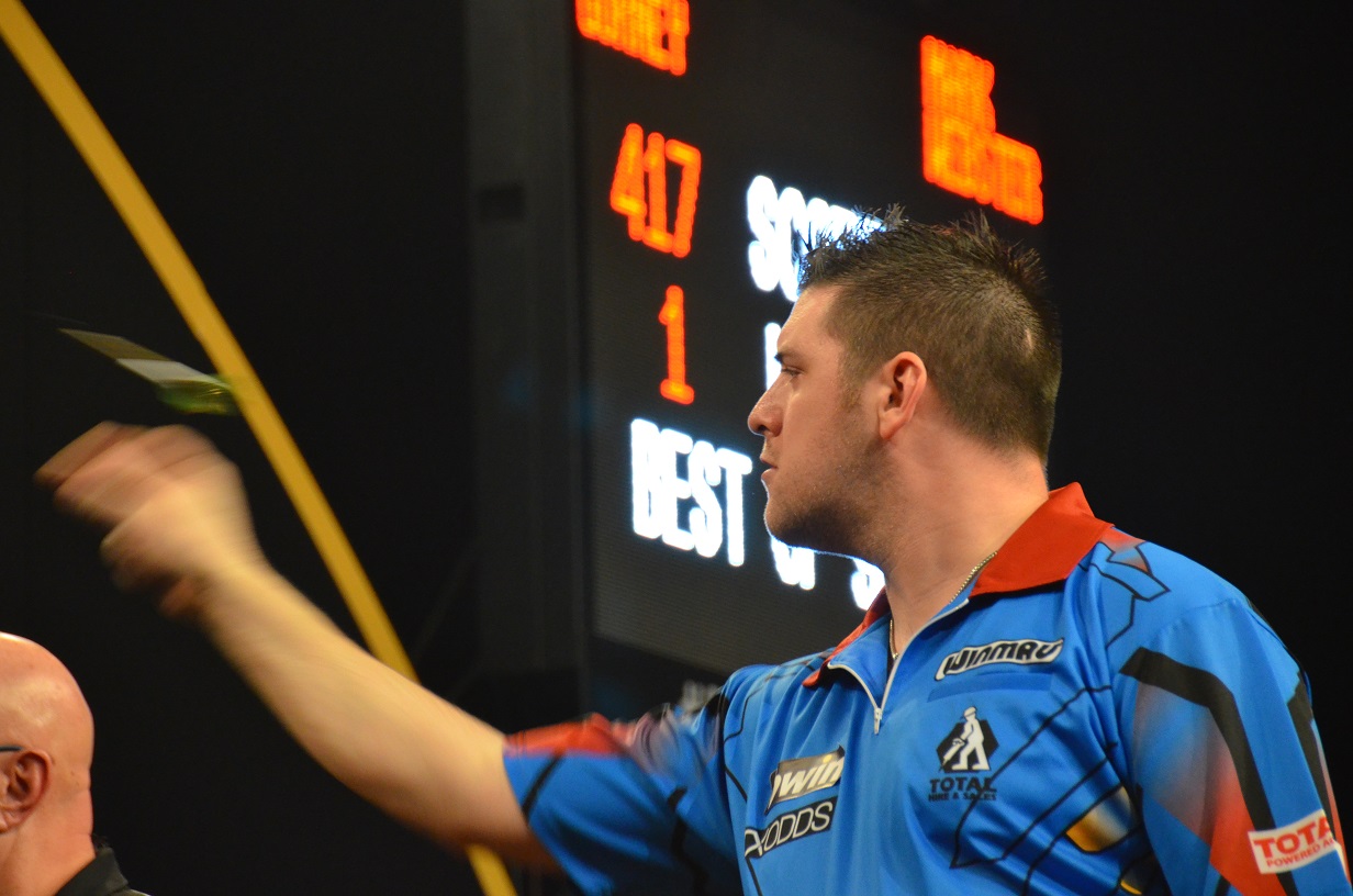 Damit waren die Verlierer durch und als erste Sieger kamen Daryl Gurney und Mark Webster auf die Bühne. Es war klar, dass in diesem Fall Daryl Gurney der bessere Spieler sein würde - da kann Mark Webster momentan einfach nicht mithalten und so verlor er auch mit 3:5. Allerdings ließ Webster auch einige Doppel liegen, während Gurney sehr sauber ausmachte.