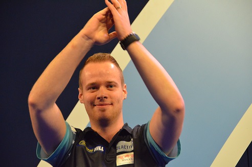 Auch im nächsten Spiel stand ein Kanadier am Oche, der aber nicht zum ersten Mal auf dieser Bühne stand. Im ersten Set lief es auch ganz gut für Jeff Smith, aber Josh Payne kam dann immer stärker ins Spiel, so dass es zu einem Kopf-an- Kopf Rennen in ein Entscheidungsset kam. Im Entscheidungsset zeigte dann Payne eine deutlich bessere Vorstellung. Er gewann es mit 3:0 und zog zum ersten Mal in die zweite Runde des Turniers ein.