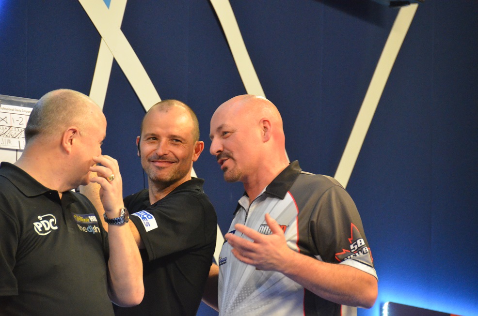 In der Abendsession fehlten dann bis auf Michael van Gerwen etwas die großen Namen und es waren auch wirklich keine herausragenden Spiele. Craig Ross war als Nachrücker für seinen jungen neuseeländischen Landsmann Tahuna Irwin ins Teilnehmerfeld gerückt und ist wohl ein sehr erfahrener Spieler. Aber selbst gegen einen Tony Alcinas, dessen Durchschnitt nicht unbedingt atemberaubend hoch bei 86.03 lag, hatte er bei seinem Debüt keine Chance und verlor mit 3:0. Er konnte lediglich ein einziges Leg gewinnen.
