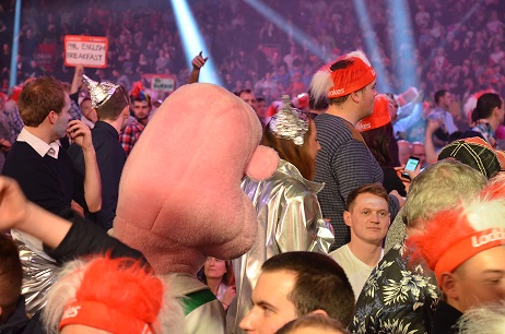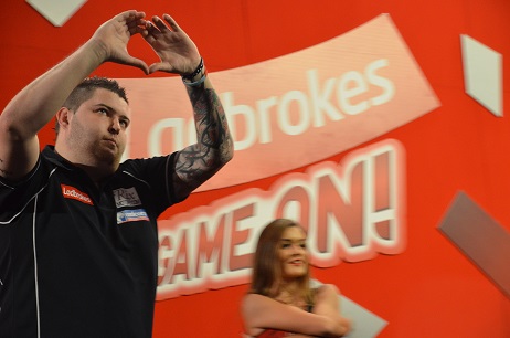 Begonnen hatte der Abend - der erste Abend mit Zweitrundenspielen - eigentlich ganz "normal": Peter Wright schlug Per Laursen, Raymond van Barneveld gewann gegen Jamie Caven, musste sich allerdings dabei ziemlich anstrengen. Vielleicht war es Caven nicht bekommen, dass er beim Walk-On nicht nur seine Frau sondern auch eine sichtlich überraschte Frau Barneveld küsste.