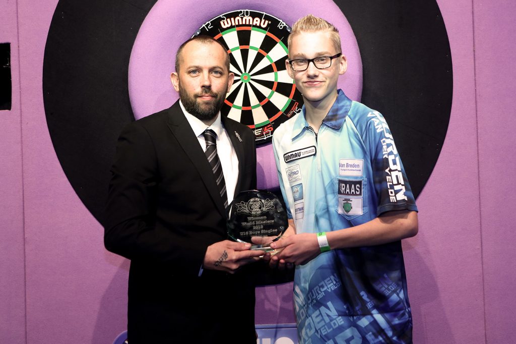 Justin von Tergouw verteidigte seinen Jugendweltmeister Titel mit dem höchsten Durchschnitt des Tages- 93.04 - gegen den Iren Killian Hefferman.