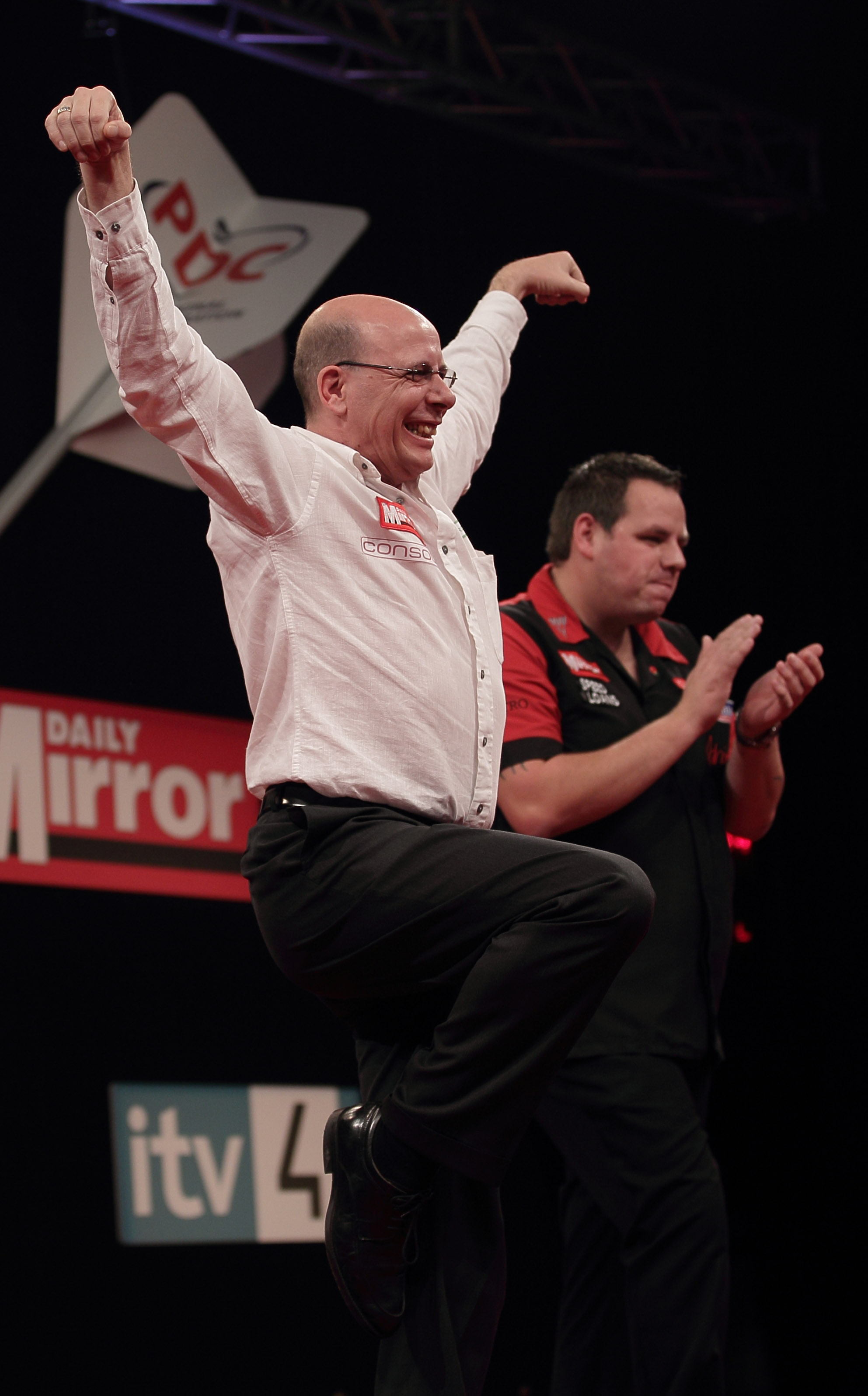hervorragenden Vorstellung, bei der er einen Durchschnitt von 104 hatte und vier 180er warf, sicher.