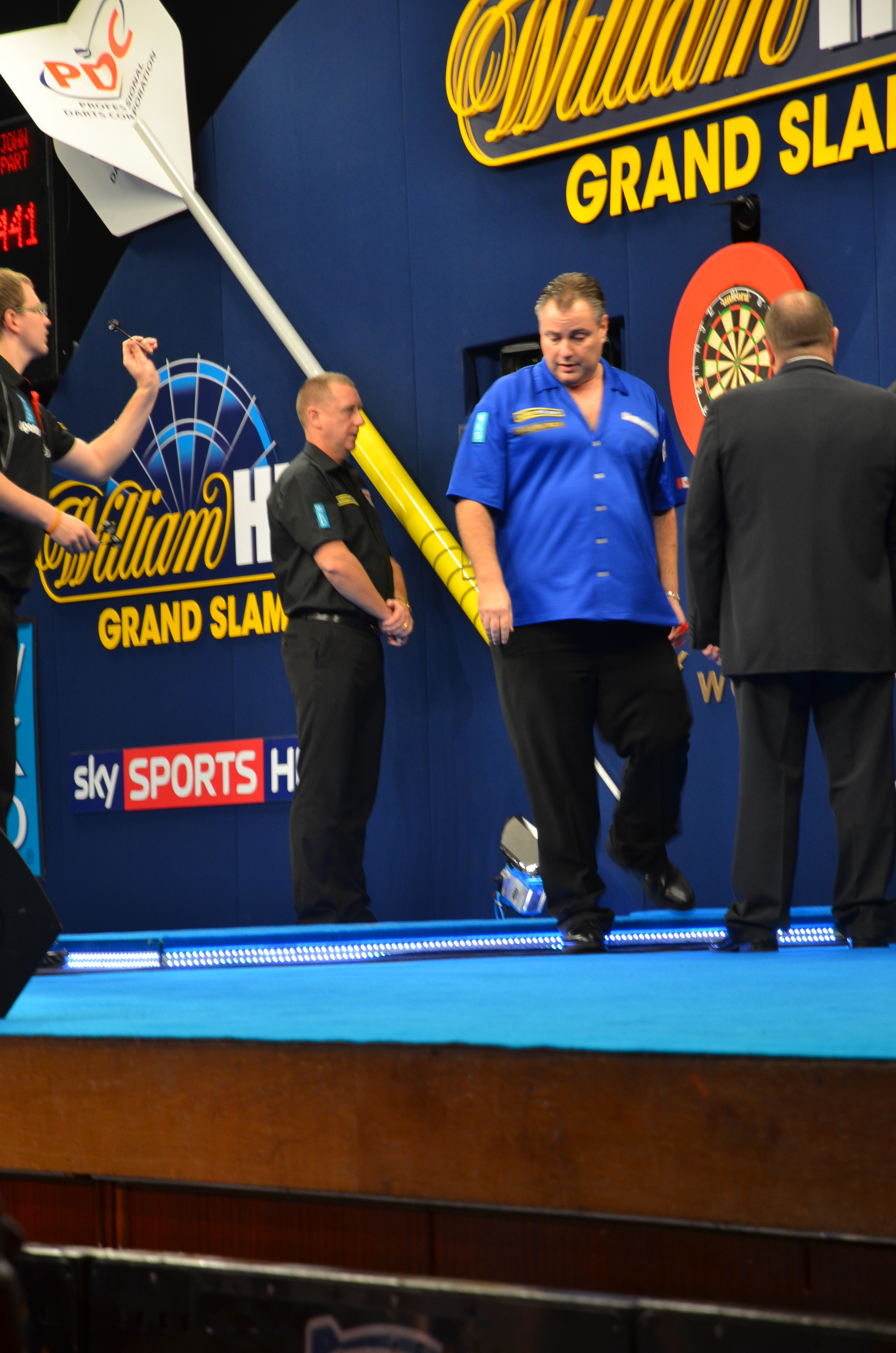 Taylor begann das Spiel mit einem sauberen 67er Finish, Beaton holte sich das zeite Leg mit der Doppel 10 nachdem Taylor die Doppel 16 nicht getroffen hatte. Auch im dritten Leg traf Taylor die Doppel 16 nicht und Beaton übernahm mit einem 120er Finish die Führung. Der dreimalige Grand Slam Champion glich mit der Doppel 16 aus und warf dann im fünften Leg zwei Maxima. Für einen Neun-Darter reichte es nicht, aber er gewann das Leg in 11 Dart und übernahm wieder die Führung. Beaton, der Taylor letztes Jahr in den Viertelfinalen geschlagen ahtte, sicherte sich das sechste Leg mit der Doppel 10, aber Taylor holte sich sofort die Führung zurück. Im achten Leg warf Beaton seine zweite 180, traf dann aber die Doppel 20 zum Legegwinn nicht und Taylort machte mit einem tollen 107er Checkout alles klar.