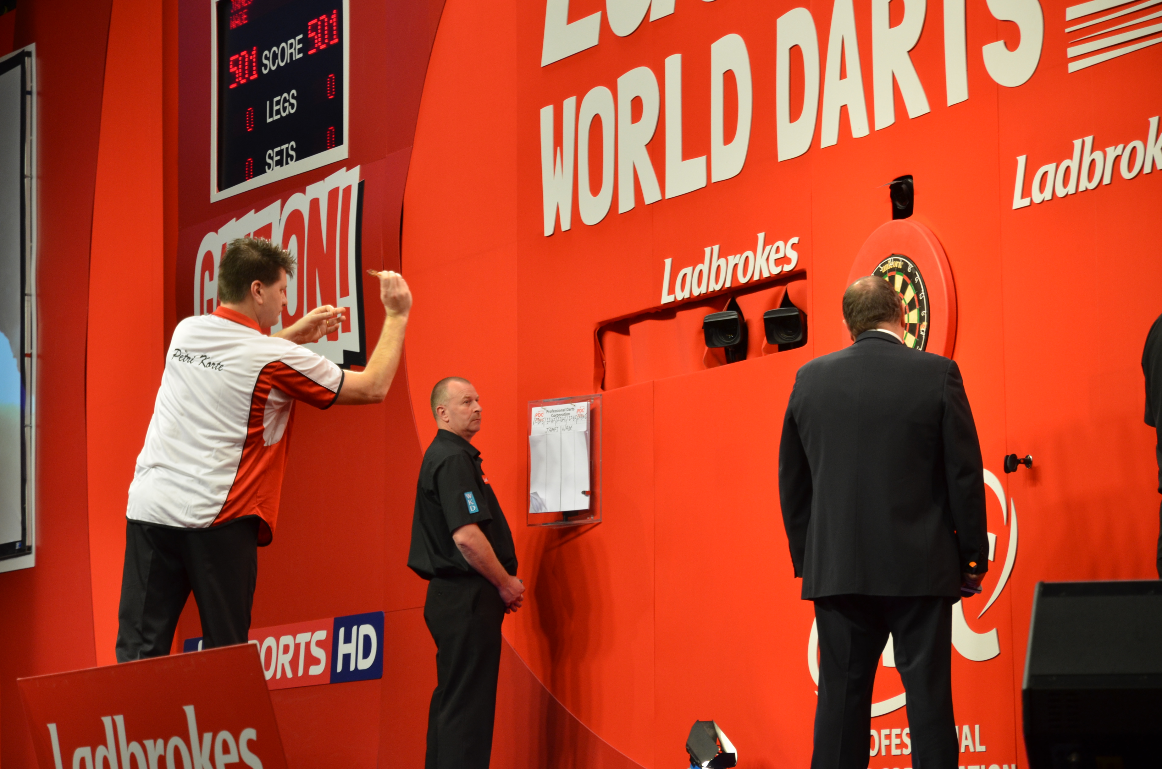 Der Finne Petri Korte brachte James Wade ganz schön ins Schwitzen, bevor Wade mit einem 3:1 Sieg in die zweite Runde einziehen konnte.