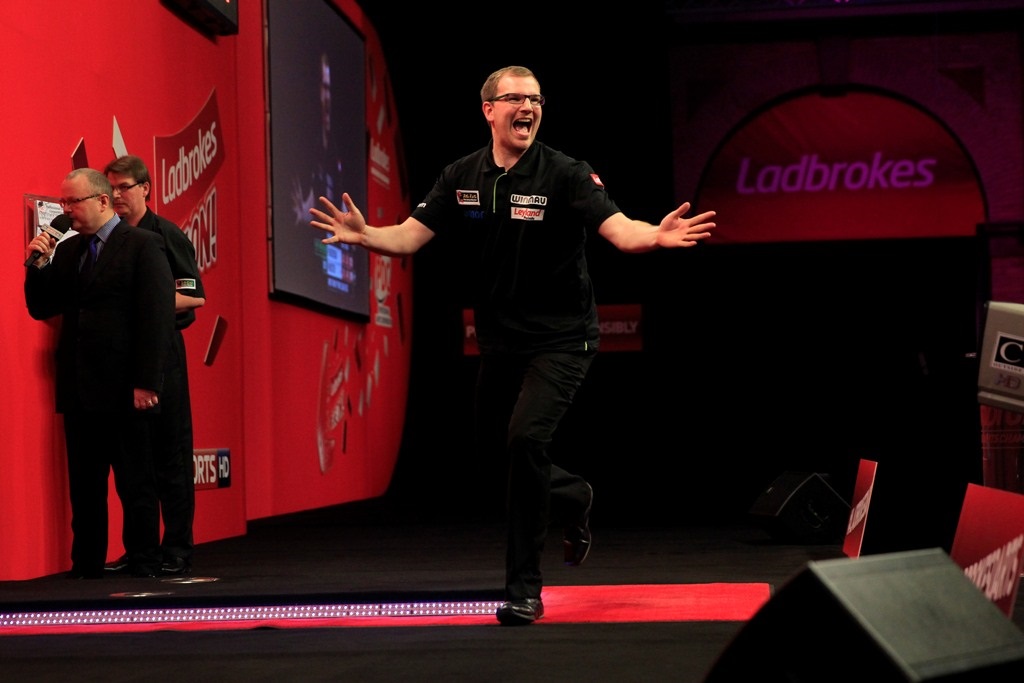 Der niederländische Superstar Michael van Gerwen, der letztes Jahr im Finale von Phil Taylor geschlagen worden war, besiegte Kevin McDIne mit 4:1. McDine hatte in der ersten Runde Wayne Jones besiegt und knüpfte an seine gute Leistung an. Die ersten beiden Sets teilten sich die beiden Spieler, Erst eine Parodie McDines auf van Gerwens Sieges-Geste brachte freilich den als Nummer 2 gesetzten Holländer wirklich in Schwung, der sich darauf das dritte und vierte Set ohne Legverslust sicherte. Im letzten Set lag er zunächst mit 0:2 zurück, holte ich dann aber doch noch den Sieg.