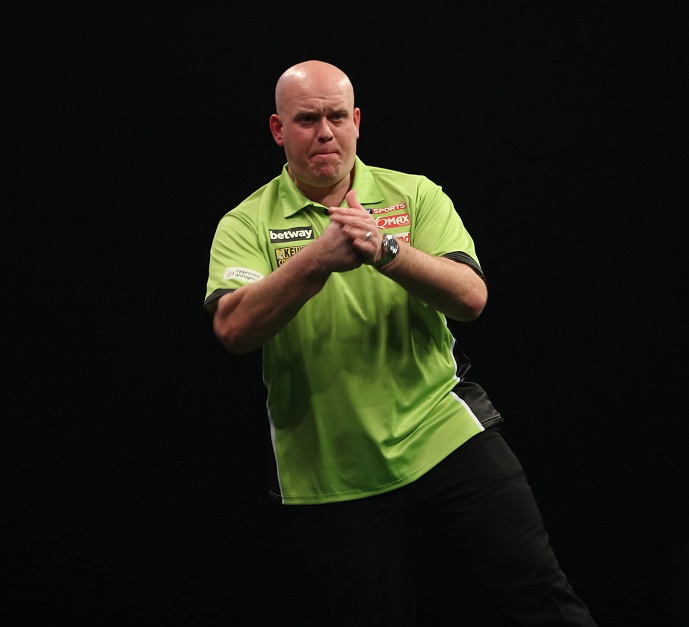 Titelverteidiger Michael van Gerwen stand in Manchester zwei Mal am Oche weil er den Spieltag in Exeter wegen seiner Rückenverletzung hatte absagen müssen. Es war ein gemischter Abend für ihn.