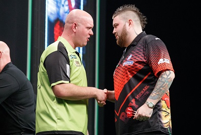 Titelverteidiger van Gerwen steht nach seinem 7:2 Sieg über Michael Smith jetzt mit zwei Punkten Vorsprung an der Tabellenspitze. Smith hatte zu Beginn des Spiels mit 2:0 geführt, dann aber kein Leg mehr gewinnen können. Der Rückstand schien van Gerwen anzufachen und bei seinem Run über sieben Legs warf er unter anderem auch Finishs von 148, 116 und 107 Punkten.