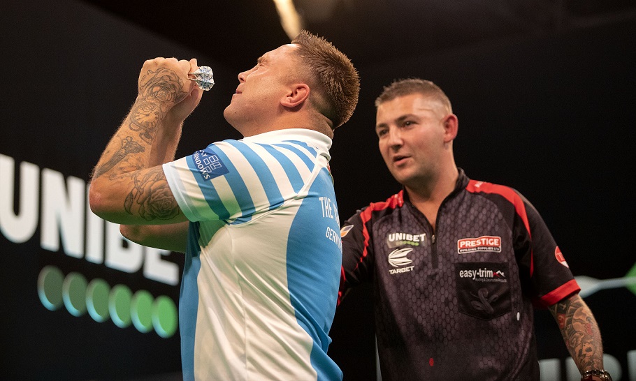 Gerwyn Price konnte gegen Nathan Aspinall einen 0:5 Rückstand noch in einen 10:6 Sieg drehen.