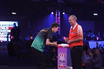 Richtig spannend wurde es dann im letzten Erstrundenspiel der Damen zwischen Trina Gulliver und der Polin Karolina Podgorska. Podgorska, die zum ersten Mal an der BDO Weltmeisterschaft teilnahm, zeigte sich von Anfang an unerschrocken und konnte das erste Set gewinnen. Gulliver reagierte und sicherte sich das zweite Set. Im dritten Set ging es dann Kopf-an-Kopf in ein Sudden Death Leg, in dem Gulliver sich den Wurf gesichert hatte. Dann spielte sie ihr bestes Leg des Spiels und holte sich mit der Doppel 5 den Sieg.