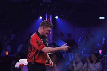 Der Nachmittag begann mit einem rein niederländischen Duell zwischen Wesley Harms und Willem Mandigers. Es war das engste der Herrenspiele des Tages. Bis zum 2:2 sicherten sich die Spieler abwechselnd ihre Sets und Harms hätte auch fast noch zum 3:0 ausgleichen können, traf aber seine Doppel 20 nicht. Mandigers nutze die Chance und traf das Doppel zum 4:2 Sieg.