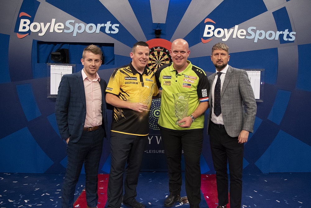 Die ersten beiden Sets des Spiels hatten sich die Spieler noch geteilt, die folgenden drei gingen an van Gerwen. Chisnall konnte ihn noch einmal kurz aufhalten, aber seinen Sieg nicht mehr verhindern.