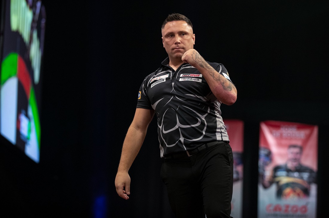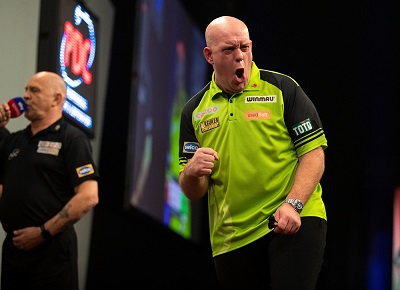 Der dreimalige Grand Slam Sieger Michael van Gerwen hatte einen Durchschnitt von 102 und verpasste bei seinem sauberen 5:2 Sieg gegen Nachwuchsspieler Nathan Rafferty nur ein einziges Doppel.