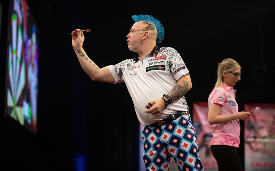 Weltmeister Peter Wright wird in einem rein schottischen zweiten Gruppenspiel auf Alan Soutar treffen - beide haben ihr erstes Spiel in Gruppe E gewonnen. Wright, der beim Grand Slam schon drei Mal im Finale stand brauchte bei seinem 5:1 Sieg über Fallon Sherrock elf Versuche für seine fünf Doppel.