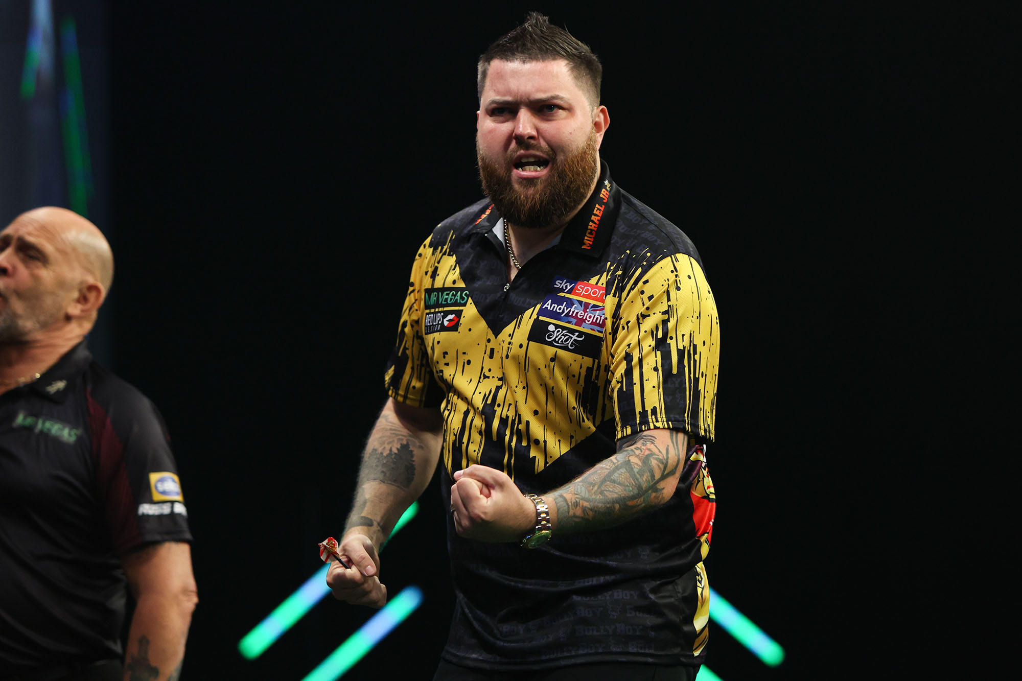 In Gruppe E werden Peter Wright und Stephen Bunting in einem entscheidenden Spiel aufeinandertreffen. Wright konnte sich im zweiten Gruppenspiel gegen Dave Chisnall durchsetzen, der damit aus dem Turnier ausgeschieden ist.