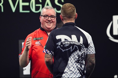 "Danny hatte wirklich zu kämpfen und ich glaube, ich ließ mich da mit hineinziehen," kommentierte der ehemalige Lakeside Champion, der unter den letzten Acht zum zweiten Mal bei diesem Turnier auf Stowe Buntz treffen wird. "Ich bin begeistert vom Ergebnis, aber nicht von meiner Vorstellung. Im Trainings Raum habe ich alles getroffen und ich war heute Abend wirklich voller Selbstvertrauen, aber es lief einfach nicht. Stowe ist ein fantastischer Spieler. Als ich zum ersten Mal gegen ihn spielte, wusste ich überhaupt nicht, was auf mich zukommen würde, aber jetzt weiß ich, wie gut er sein kann und ich kann euch versprechen, dass ich nicht noch einmal so spielen werden."