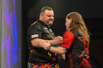 Van Gerwen bestand darauf, dass er noch sehr viel Reserven habe, nachdem er seinen Versuch, sich den Titel zu holen, mit einem hart erkämpften 4:2 sieg über Brendan Dolan fortsetzen konnte. Dolan' spätes Comeback hatte er abwehren können. Dolan hatte das umkämpfte erste Set geholt, Van Gerwen antwortete mit einem Run über acht Legs - warf dabei ein 129 und ein 149 Finish - und ging 3:1 in Führung. Dolan sicherte sich das durchwachsene fünfte Set und kam wieder heran, aber der Niederländer fing sich wieder und wird jetzt in der nächsten Runde auf Jeffrey de Graaf treffen.