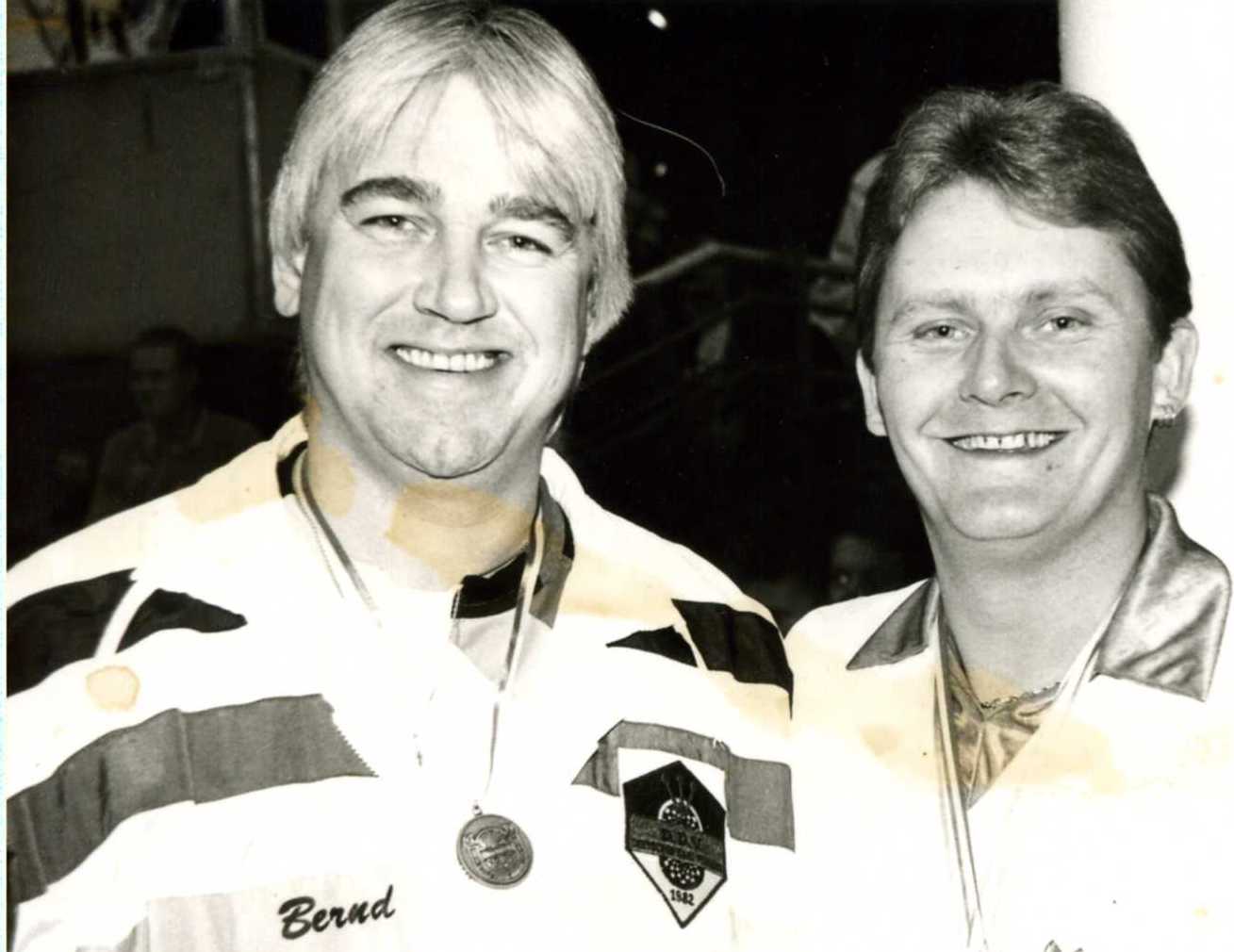 1983 the DDV became member of the WDF and for the first time a German national team traveled to a WDF World Cup which took place that year in Edinburgh. Bernd Hebecker remembers how it went off: "Players were Colin Rice, Peter Hummel, Siegfried Vogel (passed away young) and I; the women were Heather Weigelt and Petra Klump. Team coach was Rolf Kahrau - at this time DDV chairman as well. We traveled quite adventurous by car, had now idea of a dress code and were not in the draw as Rolf Kahrau didn't speak English - so we arrived there but were not registered! Somehow we managed luckily to be included, a great experience!!! Gosh, it was like a quantum leap, what an experience! All who were there wanted to experience it again and again - it was fantastic, we were together with the best players of the WORLD and were able to learn a lot! For Rice and me it was the start of a very long dominance in Germany, I think we had tasted blood!"