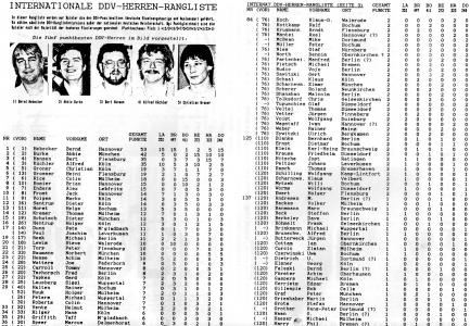 In the 1980s the DDV rankings still were "International DDV Rankings" in which you can find beside Colin Rice quite a number of British, American and Canadian players among them Abbie Burke from Munich who was four years in a row German Pair's Champion. Of him it is told he decided to retire from darts after he had practiced for a few days with Phil Taylor who stayed in Munich for exhibitions.