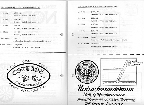End of the 1970s/ beginning of the 1980s everywhere in Germany first dart clubs were founded. Many of those don't exist anymore today. Often British, American or Canadian