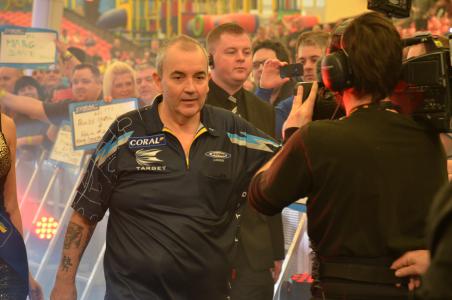 On the second day of the UK Open the last Riley's amateur qualifier was eliminated despite his crocodile - which was difficult to handle - from the tournament fourth round. The number of boards was reduced first from eight to four and all three venues were rather crowded. Later only two staged were left. At stage two there was no walk-on which didn't harm the atmosphere. Beside one tried with not working microphones, strange noises (some heating pipes) and other minor problems to create some diversion. Some good matches were added and Reds was a viewer magnet the whole day.
