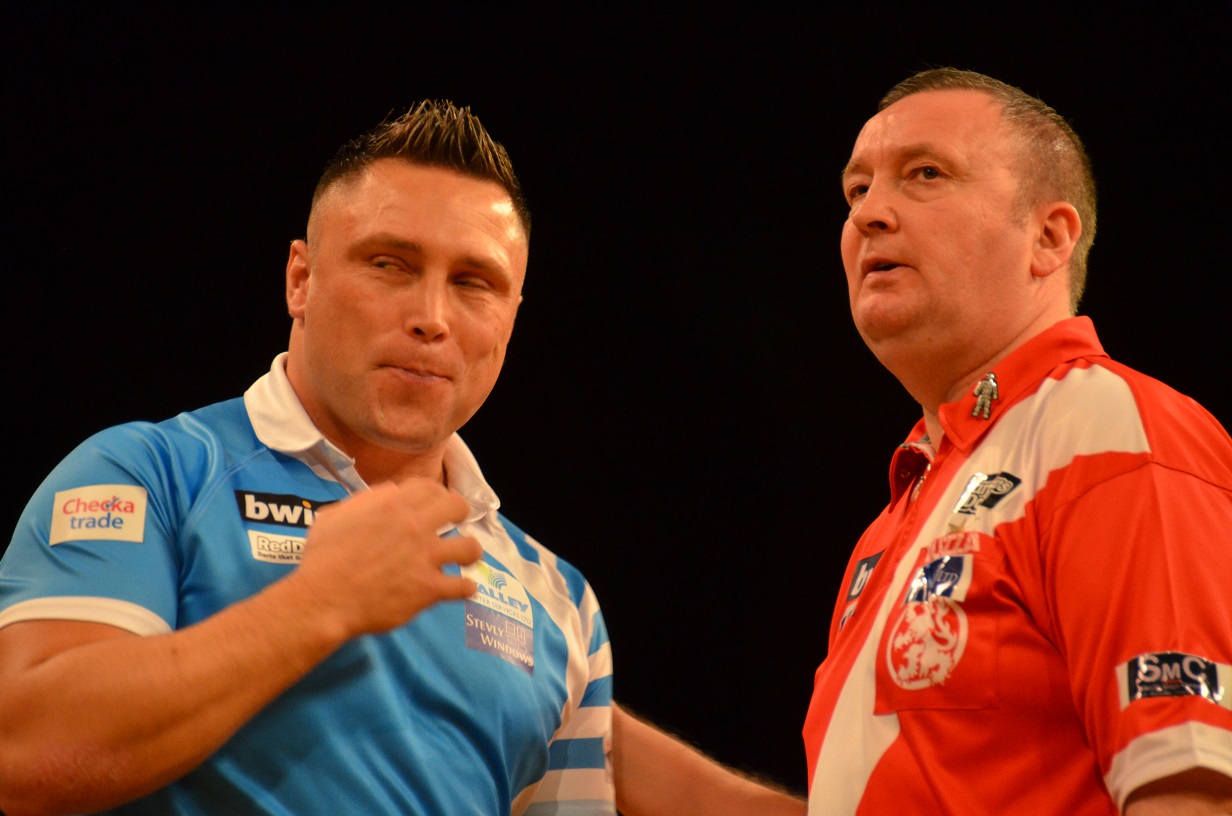 In the last match of the day Gary Anderson showed in top form and steamrolled Ian White who had been so impressive in his first match. But when Anderson works magic like this every opponent is powerless. After his second win Gary Anderson is already qualified for the Knock-Out phase. Who will progress with him will be decided in the match between Michael Unterbuchner and Ian White. Unterbuchner probably will go into the match with more confidence then Ian White. Steve Hine is already out of the tournament but will spread his Muffins for a last time on Tuesday.