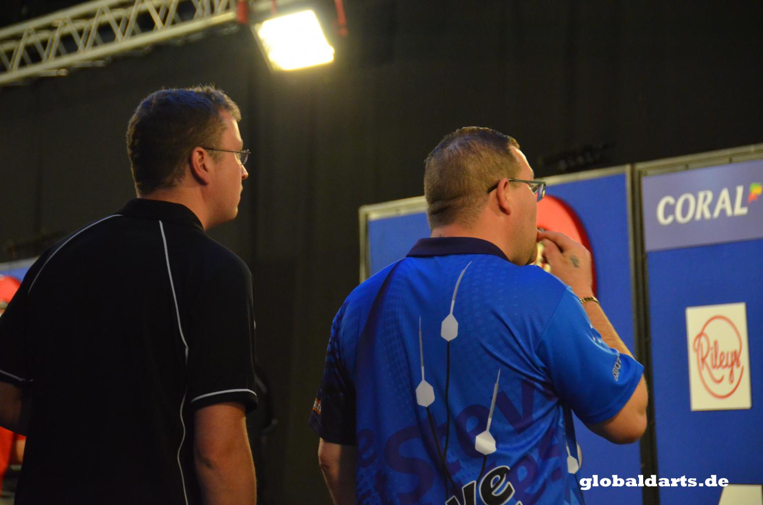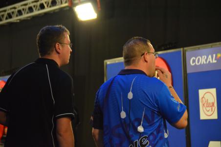 In the evening the tournament went on with the fifth round. And with the upsets. In the first match on the main stage it looked like Mervyn King would have no problem to get rid of John Part but somehow Part managed to turn the match around with the help of some big finishes and won it. I have no idea how Robert Owen managed to overcome Ian White it certainly was a surprise after the great darts White had produced in his other matches. David Pallett won against Kim Huybrechts and couldn't believe it. Steve West played very consistent and focussed against Michel Smith and made no faults - it was a deserved win.