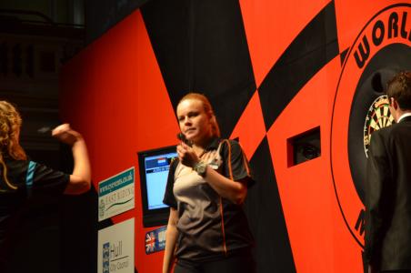 Without a break the ladies followed. The first semi-final was a solid match though not high class. Rachel Brooks is not a fast thrower and from time to time takes her time to compose herself. She and Fallon Sherrock were not really consistent with their scores - in the end Sherrock won. In the second semi-final with Anastasia Dobromyslova and Aileen de Graaf two of the top players stood on stage, which showed a high-class performance. Dobromyslova progressed to the final.