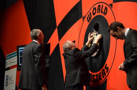 The second day in the City Hall in Hull was before me. The sun had come out again after a showery night when I started to walk down. This time a lot of young spectators were in the hall as the youth finals were played first. A lot of spectators were dressed up or did at least wear hats or glitter wigs which were sold at the BDO booth in the lobby.