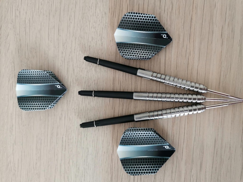 The darts come fitted with 26mm (protruding) plain silver points as standard. The darts themselves are definitely unique while being a traditional straight barrel. The are 4 main grip sections, each one subtly different, as you move along the barrel.