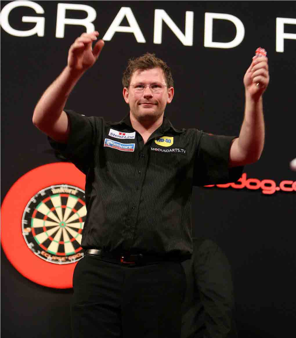James Wade began his challenge for a second Bodog.com World Grand Prix title with a straight sets defeat of Irishman
