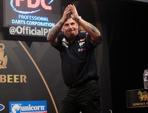 "It's not an easy group so I'm very happy with this win and I feel confident and focused," said van Barneveld. "I've been playing some fantastic darts but other players have had great matches against me, but today I got the result. Andy didn't play his A-game, but my game was really good. If the self-belief is there then you see how I can play and I'm looking forward to playing Gary tomorrow because he's playing really well at the moment. He reached the final of the European Championship last week and he's the Premier League champion and the World Champion, so you know what you have to do. You have to play well and hopefully that's what I'm going to do tomorrow."
