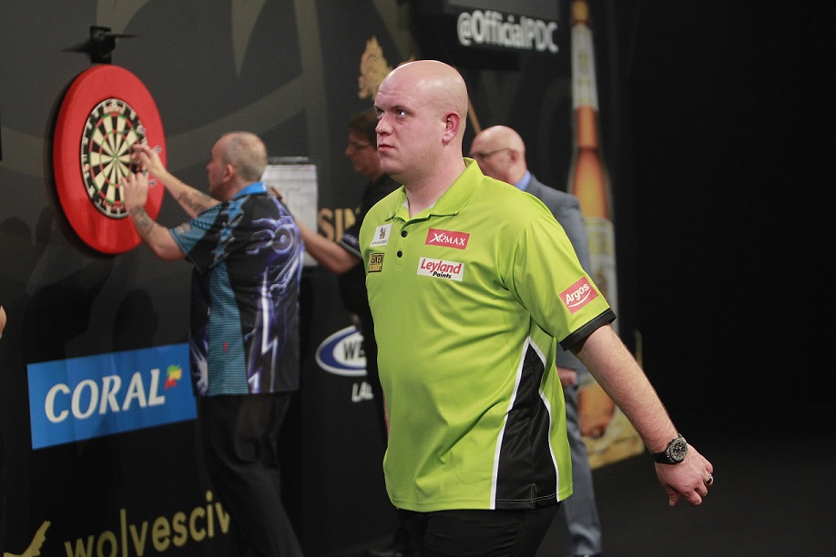 A 12-darter saw Taylor hit back and he then levelled on double ten, but van Gerwen broke throw by finishing 121 for a 12-darter and stepped in following four further misses from his rival in the next two legs to establish a 12-9 cushion.