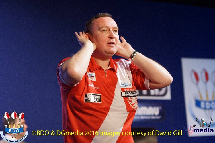 The men's semifinals followed and first up were Glen Durrant v Jamie Hughes. Durrant now more or less had "warmed up" and for the first time in the tournament showed why he is the number 1 of the BDO. He played an average of almost 100 and threw six 1980s. For a much weaker playing Hughes he was just too strong and Durrant remained with a clear 5:0 win on track to defend his title. While Durrant finally was on fire Scott Mitchell in the second semi-final against Mark McGeeney seemed to be off the boil. When McGeeney was 3:0 ahead Mitchell started a strong comeback but didn't manage to level 3:3 and McGeeney without a lot of resistance won the last two sets of the match as well.