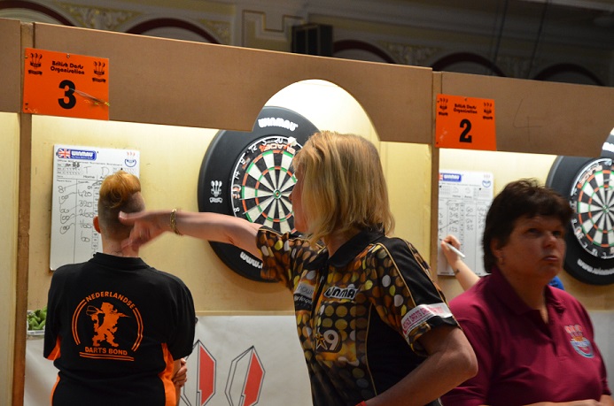 The match between Aileen de Graaf and Anca Zijlstra was from beginning dominated by de Graaf but she had some weaker phases as well and missed 10 matchdarts. De Graaf won the first set without losing a leg and it looked she would have no problems in the second set either but Zijlstra took her chance to draw when de Graaf missed two Matchdarts. Stunned by this de Graaf had first to recover in set three but she won the first two sets. She missed another six Matchdarts in leg 3. In the fourth leg she managed to cross the finishing line with a double 20 and for the first time reached the semi-finals in Lakeside.