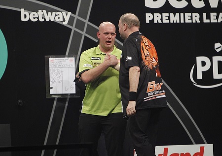 The night in Cardiff - held in front of a sell-out 4,000 crowd - saw the two other matches end in a draw as reigning champion Gary Anderson shared the spoils with James Wade before Dutch rivals Raymond van Barneveld and Michael van Gerwen had to settle for a point apiece.