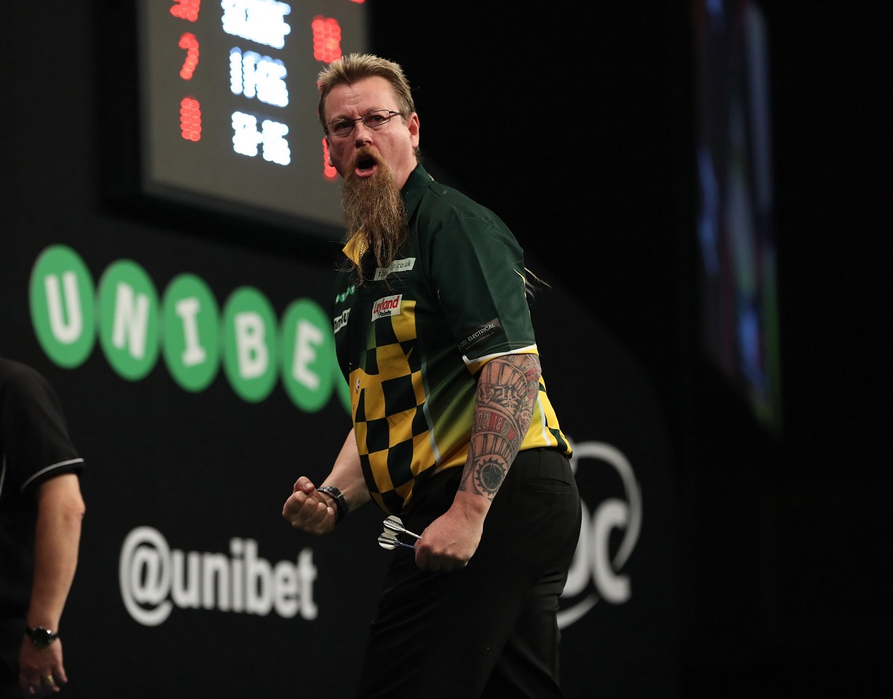 The 47-year-old claimed all three legs in the final set of the match in style, taking out 24 on double 12 in the first, 121 on the bull on the second before finally wrapping up the victory with a 112 finish on tops.