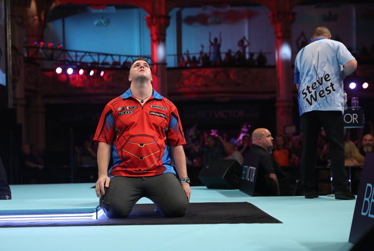West missed two more darts at double in the next leg as the Northern Irishman struck double 20 with his final dart in hand to stay alive once again.
