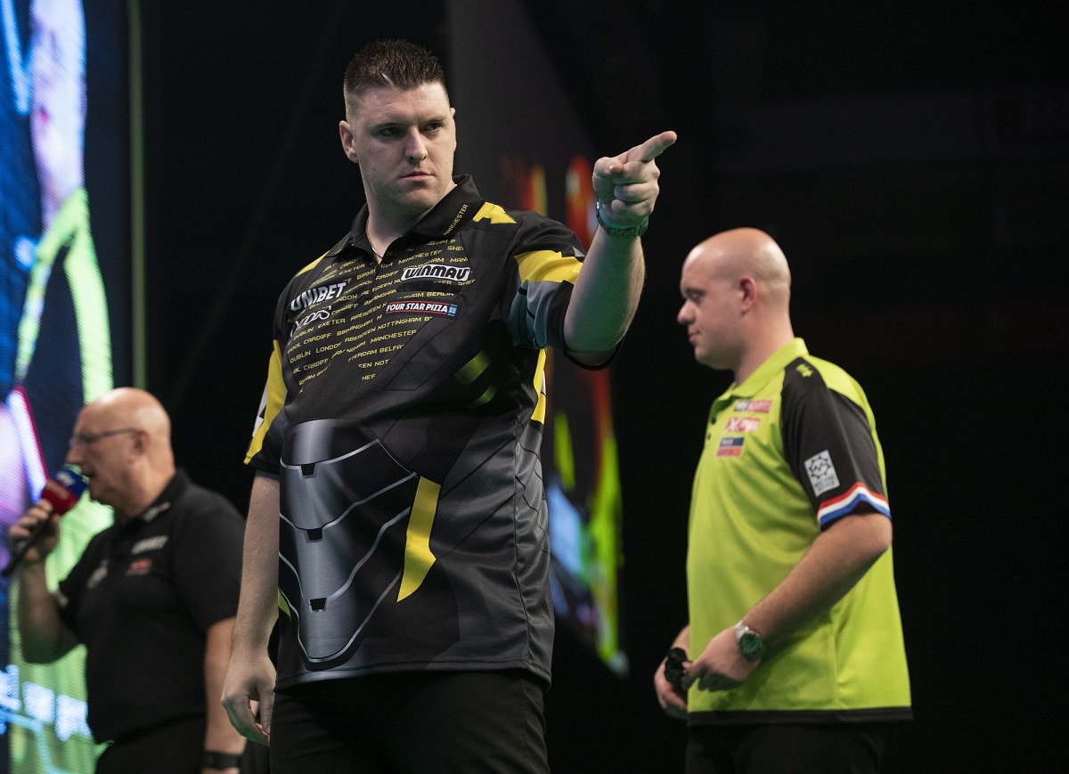 Gurney raced into a four-leg lead, taking out 105 and 76 for breaks of throw, before a 127 checkout from Van Gerwen got the reigning champion off the mark.