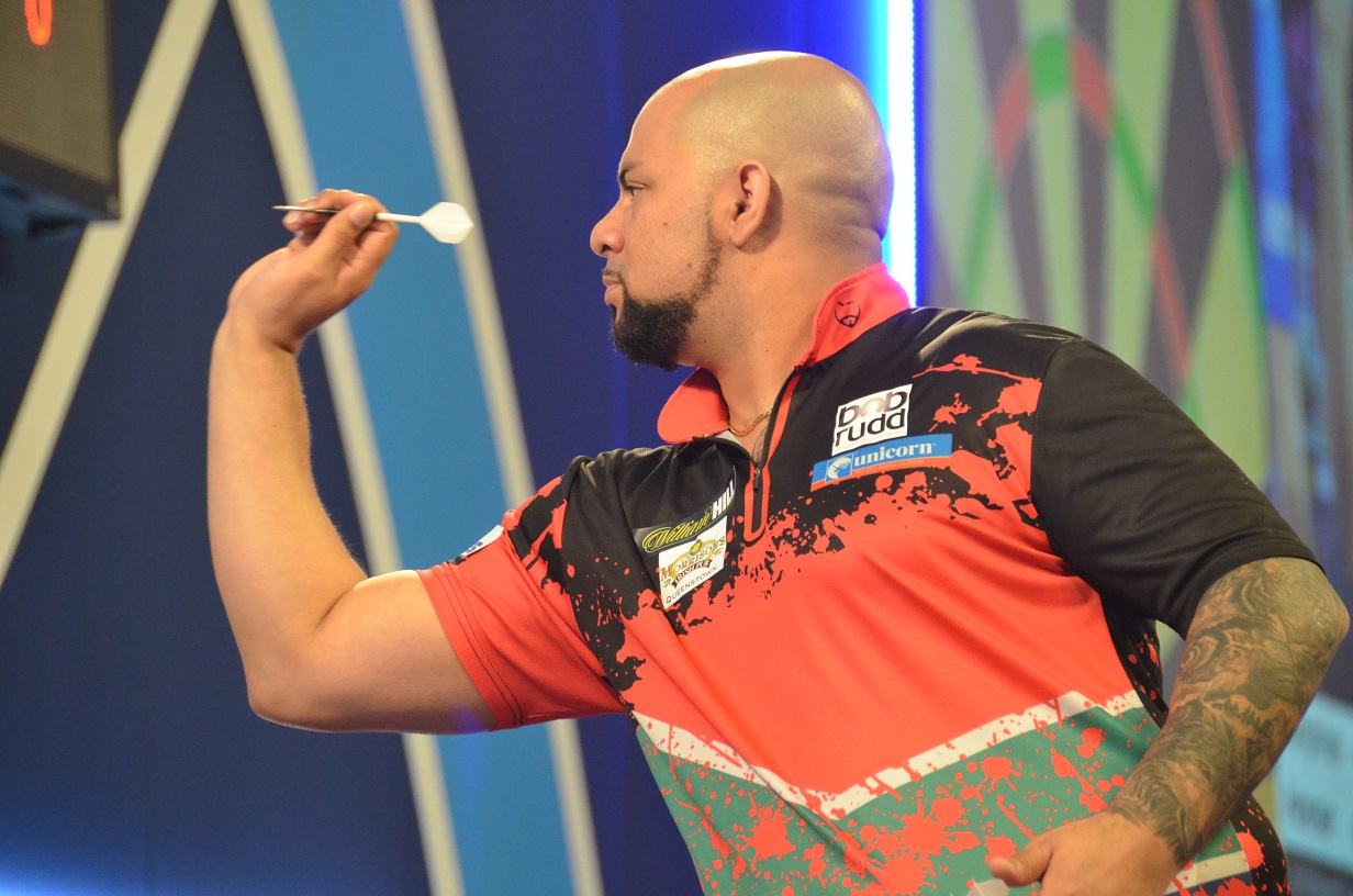 Devon Petersen by now represented his country South Africa seven times in the PDC World Championship and reached 2014 and 2019 the last 16. Since 2012 he took part several times in the PDC World Cup as well. Once in this time Team South Africa stood in the quarterfinals - the till now best placing. 2011 Petersen for the first time got a Tour Card but he had to put his career on hold 2013 due to an injury. In 2015 Petersen won his Tour Card back but to begin with travelled back and forth to take part in the tournaments. 2016 he for the first time stood on the Pro Tour in a quarterfinal and became the first South African in the PDC to throw a nine-darter. The following years his performances varied and success on the Pro Tour was rare. He joined the Sky Sports commentators team and delighted the crowds from time to time with his stage dance. It looked his performance started to improve since mid-2019 - he played from time to time outstanding averages but still without real success.