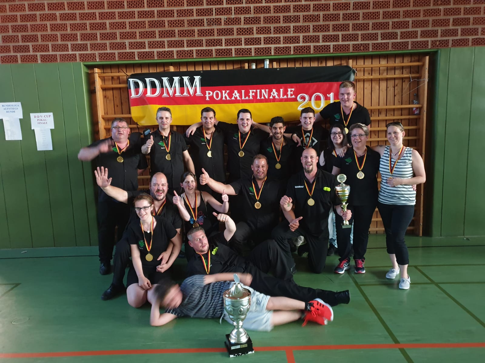 Seit 1989 bietet der DDV für seine Vereine einen Pokal-Wettbewerb an. Die teilnehmenden Vereinequalifizieren sich über eigene Landes-Pokalwettbewerbe. In Hanau kürten sich nun The Vikings Berlin (DVBB) zum DDV-Pokalsieger 2019. Die Hauptstädter, für die u.a. Martin Schindler am Start war, setzten sich 7:4 gegen den 1.DSC Bochum (NWDV) im Endspiel durch. Dritte Plätze erreichten der DC Black Birds Kelheim (BDV) und der DC Lumberjacks Salzgitter (NDV).