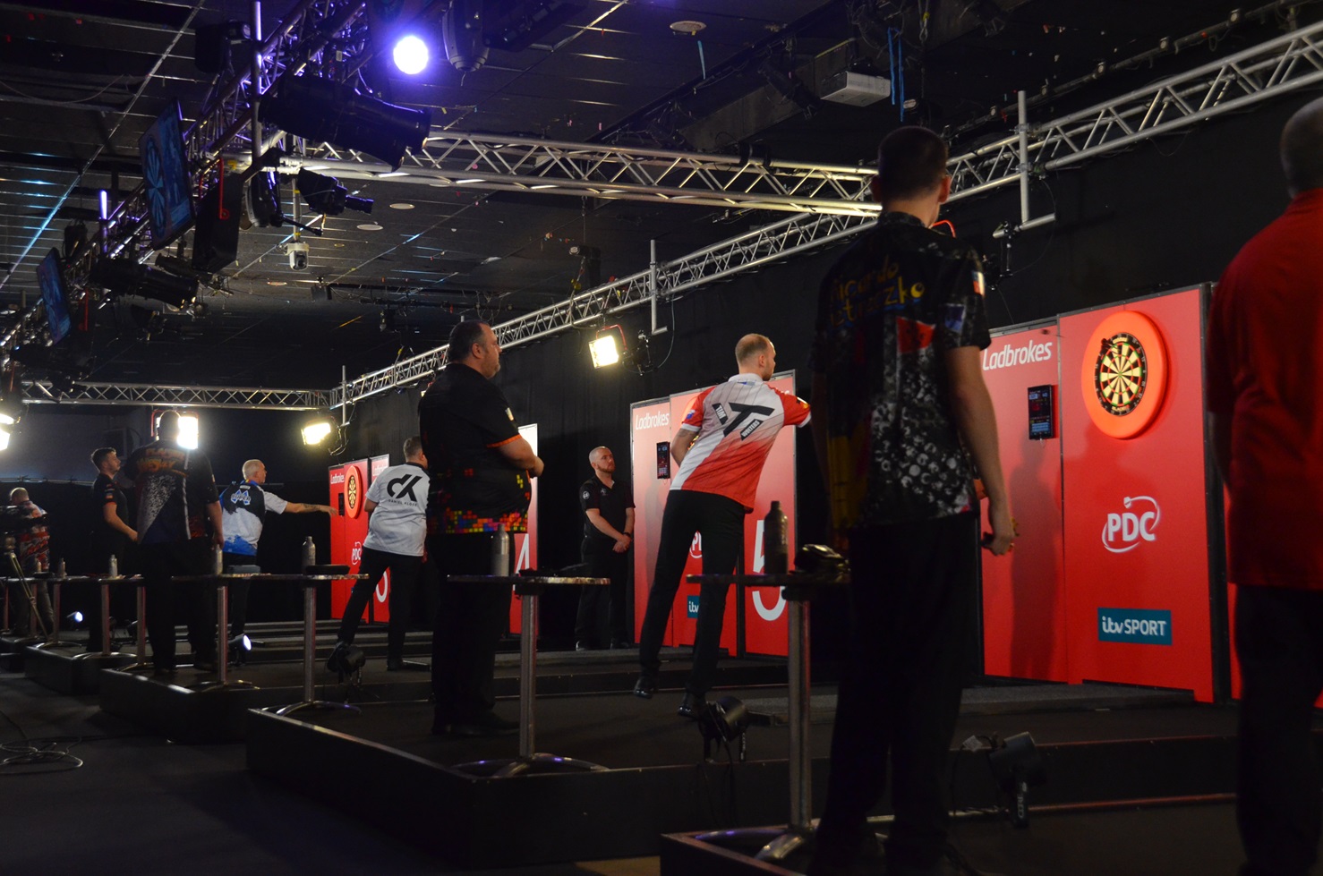 Ich drängelte mich zunächst einmal zu den Bühnen drei bis acht, wo es doch einige überraschende Ergebnisse gab. Ryan Searle verlor knapp gegen Graham Usher, schien es aber mit Humor zu nehmen. Florian Hempel verzweifelte an Gian van Veen und an sich selbst und verlor gegen den jungen Niederländer. Raymond van Barneveld scheiterte knapp an Luke Woodhouse. Peter Wright scheint wirklich so langsam wieder in Form zu kommen und hatte gegen Joshua Richardson keinerlei Probleme. Ricky Evans ließ Scott Williams keine Chance - auch eine kleine Überraschung, die von den Zuschauern begeistert gefeiert wurde. Mit Brett Claydon schied ein weiterer der neuen Tour Card Inhaber gegen Ryan Meikle - von dem in diesem Jahr auch noch nicht viel zu sehen war - aus dem Turnier aus.