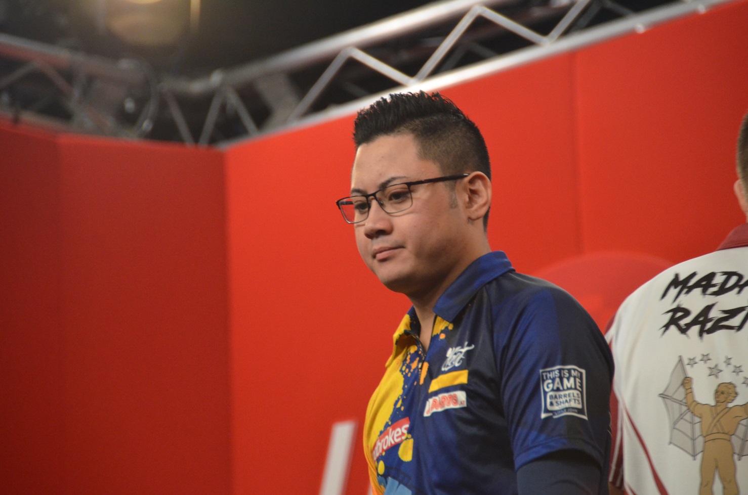 Als ich wieder zur Hauptbühne zurückkam, war van Gerwen dabei zu verlieren. Er schien Probleme mit der Schulter seines Wurfarms zu haben, die er dauernd schüttelte, dehnte oder kreiste und schien auch aufgegeben zu haben. Mit ihm schied sicher einer der Favoriten auf den Titel aus dem Turnier aus.