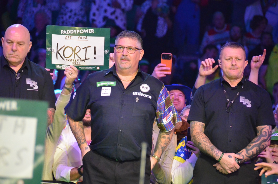 Daneben habe ich eine ganze Reihe von bunten Bildern im Kopf, wenn ich an meine Tage bei der diesjährigen Weltmeisterschaft zurück denke - den Walk on von Ricky Evans, David Munyuas Tanz auf der Bühne, den sehr blassen - in jeder Hinsicht - Dimitri van den Bergh, der hoffentlich irgendwann seine Probleme überwinden kann, Peter Wright, der seine Grinch Handschuhe nur mit Hilfe von Noa-Lynn van Leuven wieder los würde, das sehr nostalgische Spiel zwischen Ian White und Mervyn King und natürlich Paul Lim, der ein so überzeugendes Erstrundenspiel spielte, während im Hintergrund auf der Bühne Jeffrey de Graaf langsam aber sicher verzweifelte.