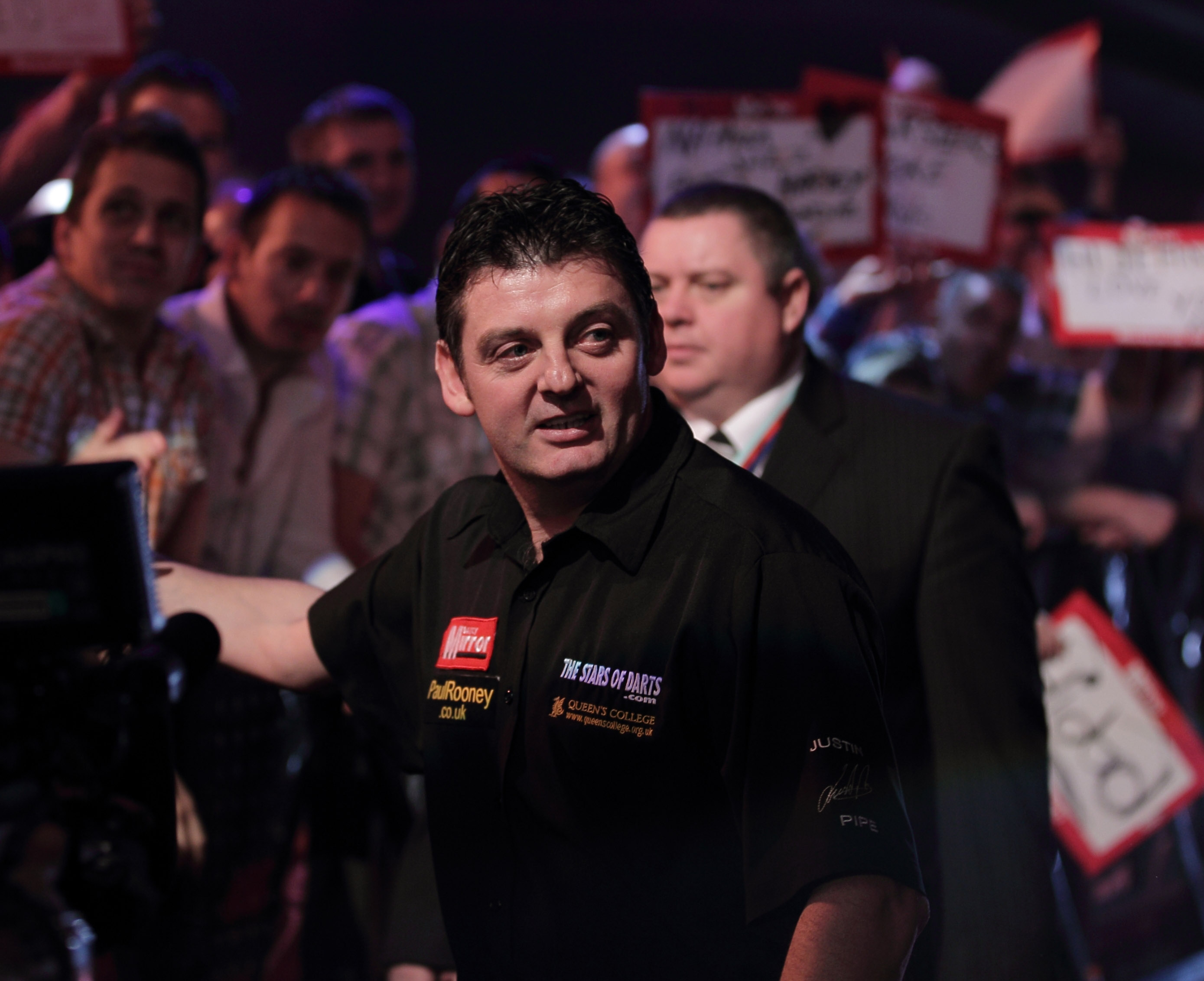 Pipe hatte gegen Mark Walsh Pech, als ihm der Schaft eines seiner Darts brach und er eine Zeitlang einen Dart von Mark Walsh mitbenutzen