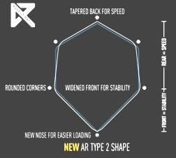 Etwas, was ich selbst getestet habe, ist der Prototype eines Flights. Trefft also die neuen Unicorn Flight Form "AR"! AR steht für "Aspect Ratio"(Streckung) einen aerodynamischen Begriff für die Spannweite eines Fluges oder anderer Oberflächen, die für Auftrieb sorgen geteilt durch die durchschnittliche Länge oder Profiltiefe. AR Flights werden so genannt, weil ein wesentlicher Punkt bei ihnen ist, dass es sie in zwei Größen mit derselben Form gibt und damit gleicher Aspect Ratio /Streckung (1.118 falls du es wissen möchtest). Dadurch sollte das Experimentieren mit den Set-Ups etwas einfacher werden, weil eine der Variablen eliminiert wurde. Aber die AR Flights bieten noch mehr.