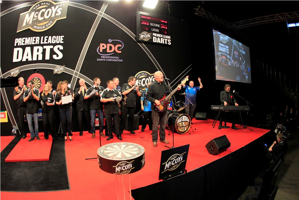 Im Laufe des Abends wurde auch die Wohltätigkeits Single "Got my Ticket for the Darts" vorgestellt und Taylor, Wade, Hamilton, Anderson, van Barneveld, Lewis, Painter und PDC Chairman Barry Hearn standen zusammen mit Chas Hodges auf der Bühne.