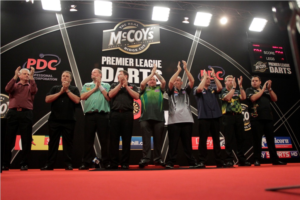 Begonnen hatte der Abend mit einer Ehrung des verstorbenen zweifachen Weltmeisters Jocky Wilson, der mit emotionsgeladenem Klatschen zu Beginn des Abends gewürdigt wurde. Dabei standen neben den sieben Premier League Spielern auch die ehemaligen Stars Rod Harrington und Keith Deller auf der Bühne.