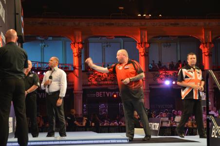 Der einheimische Publikumsliebling Baxter, der nur ein paar Meilen entfernt vom Winter Gardens lebt, konnte gegen Andy Hamilton nur ein einziges Leg gewinnen, der UK Open Finalist fegte ihn mit 10:1 förmlich von der Bühne.